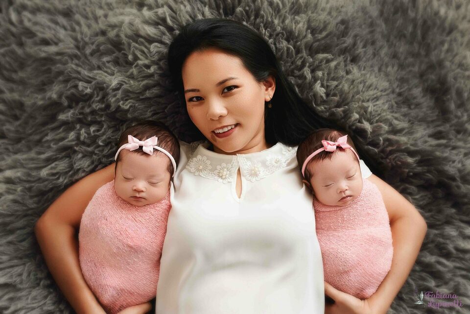 newborn de gêmeas lindas